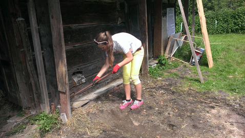 Terwijl er hard werd gewerkt aan het pasklaar maken en plaatsen van de speeltoestellen vonden we nog wat werkzaamheden om te doen, zodoende werd er van hout bankjes gemaakt en na reparatie van de berging het stookhout keurig netjes in het schuurtje geplaatst. Zo had iedereen werk, niemand hoefde zich nutteloos te voelen.