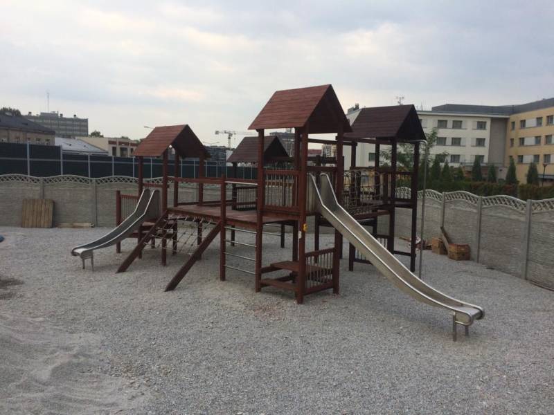 Er zijn vandaag enkele reparaties uitgevoerd. Ook is de hulp van de militairen weer ingeroepen en nu staan eindelijk de laatste onderdelen beneden. Morgen verwachten we een klein kraantje die is nog nodig voor de gaten voor de laatste speeltoestellen.